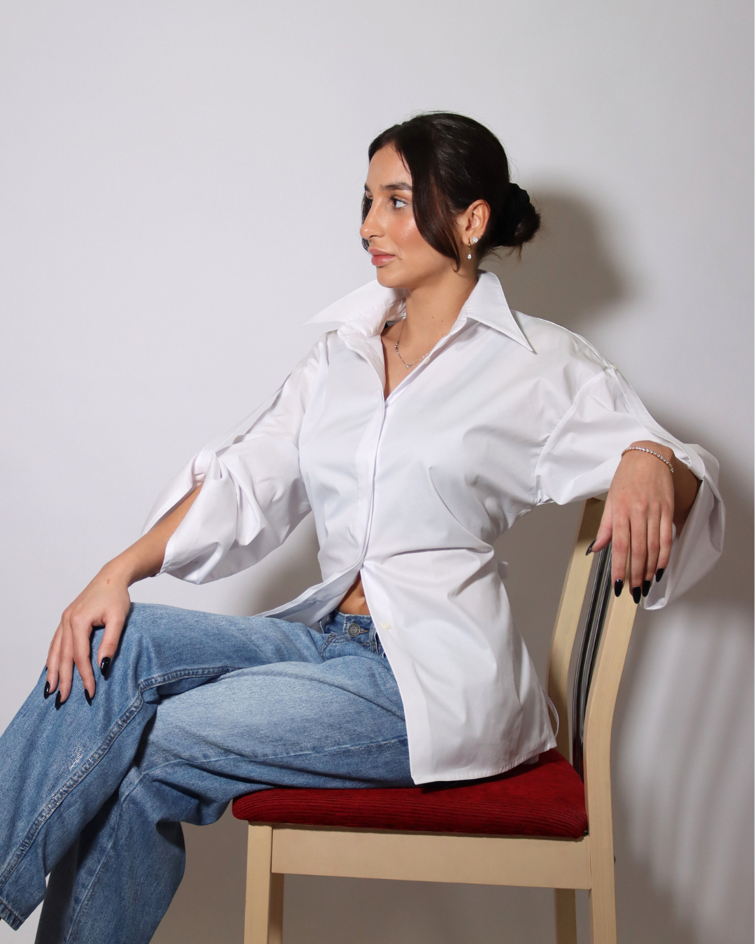 Cămașa ASTRID are un croi drept și lejer, în mărime unică, creat pentru confort și versatilitate. Mâneca foarte largă, prinsă cu baretă, și cordonul din talie, ce poate fi purtat liber sau legat în față ori la spate, permit ajustarea siluetei și adaugă un plus de feminitate unui design relaxat și rafinat.